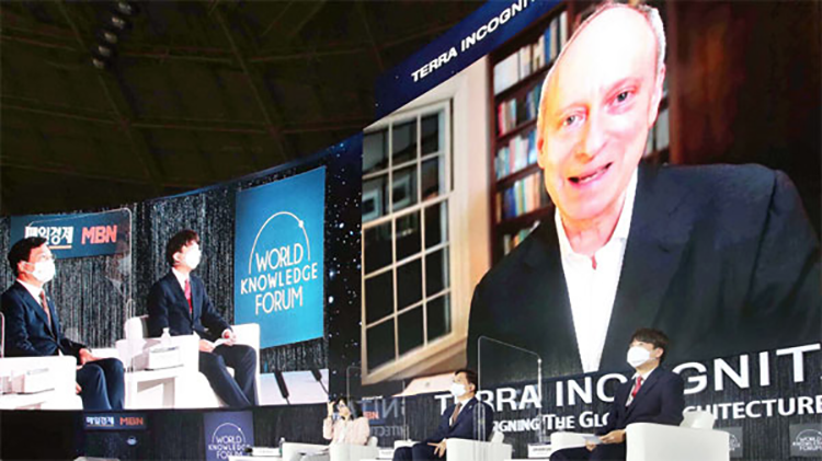 조현상 부회장이 9월 14일부터 사흘간 서울에서 열린 ‘2021 세계지식포럼’에 참석했다. 22회를 맞은 이 행사는 국제 사회를 선도하는 정재계, 학계 리더들이 머리를 맞대고 지구촌의 미래를 고민하는 장으로, 올해는 마이클 샌델 하버드대 교수와 전 세계 석학, 글로벌 CEO들이 ‘공존을 위한 새로운 시대정신’을 주제로 다양한 논의를 벌였다.