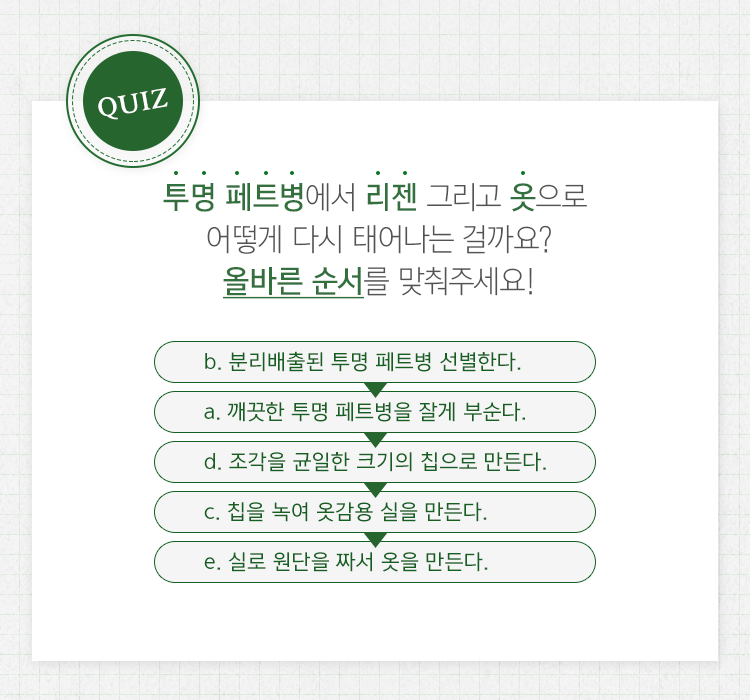 버려진 페트병에서 리젠 그리고 옷으로 다시 태어납니다