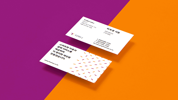 현재 티머니의 전신은 ‘한국스마트카드’입니다. 본래 티머니는 이 한국스마트카드의 여러 브랜드들 중 하나였어요. 사명을 ‘티머니’로 변경하면서 통합 브랜딩을 전개했고, 2019년 리뉴얼된 기업 브랜드를 공식 발표했습니다.