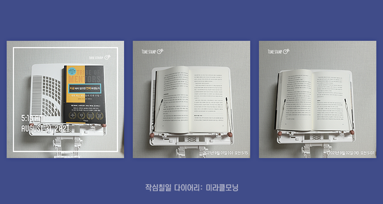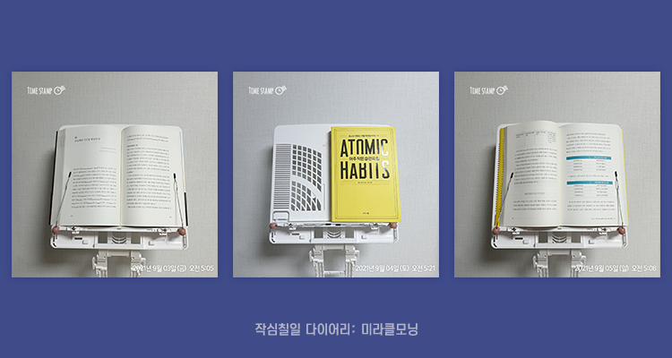 미라클모닝을 하면서 느낀 이 프로젝트의 최고 장점은 하루의 시작을 혼자 온전한 시간으로 보내니 온종일 긍정적인 생각을 하게 되는 것입니다. 정신이 건강해지는 미라클모닝, 여러분도 꼭 한번 도전해보세요!