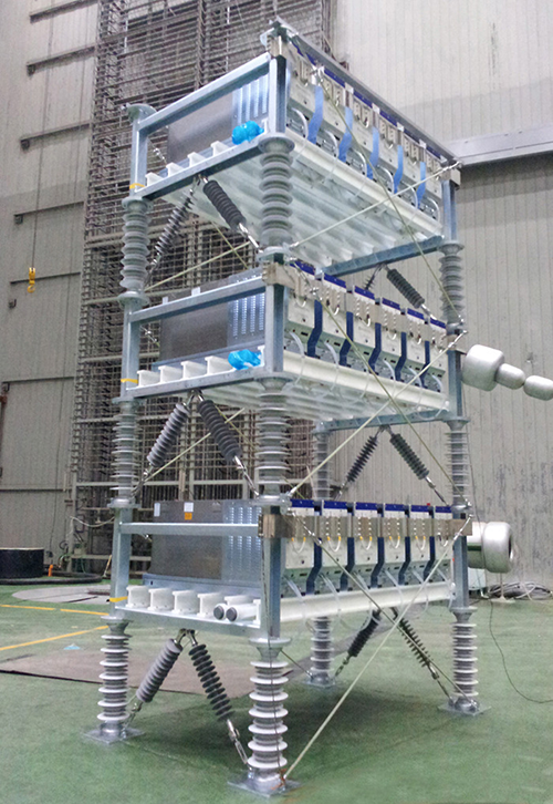 효성중공업은 1990년대 말부터 스태콤 분야의 연구 개발을 추진하여 2006년 국내 최초로 스태콤 상용화 기술을 보유하게 되었습니다. 2010년 상용화 제품 개발까지 성공한 데 이어, 스마트 그리드 구축 사업과 함께 2015년에는 ‘MMC(Modular Multilevel Convertor) 스태콤’ 개발에 성공했습니다. 전 세계에서 세 번째로 이룬 쾌거였죠.