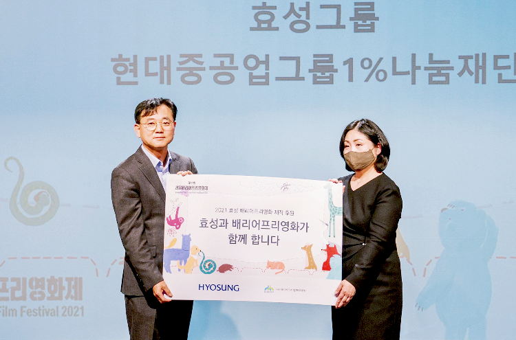 효성이 ‘11회 서울배리어프리영화제’ 개막식에서 배리어프리 영화 제작 지원금 2,000만 원을 전달했다. 올해로 후원 5년 차를 맞이하는 이 사업은 시청각 장애로 인한 제약 없이 영화를 감상할 수 있도록 영화를 재제작하는 프로젝트다. 효성의 후원으로 지금까지 총 9편의 배리어프리 영화가 제작됐고, 효성인들이 재능을 기부해 더빙에 참여하기도 했다.