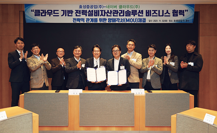 11월 2일 마포 사옥에서 효성중공업과 네이버 클라우드의 양해각서 협약식이 열렸다. 양사는 효성중공업의 전력 설비 자산 관리 솔루션과 네이버 클라우드의 인프라 서비스를 결합해 사업 경쟁력을 높이기로 했다. 효성중공업은 공공 기관용 클라우드 서비스를 전개하는 네이버 클라우드와의 협약으로 공공 부문 사업 입찰에서 유리한 위치를 선점할 수 있게 됐다.