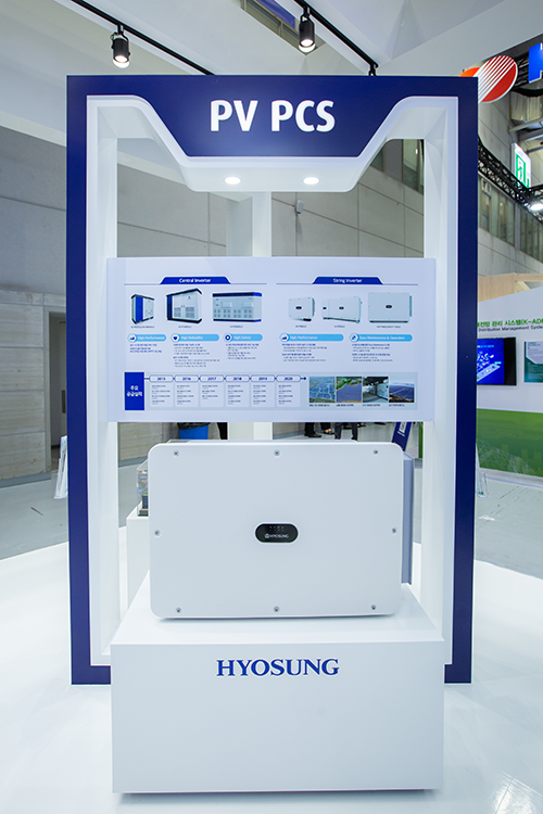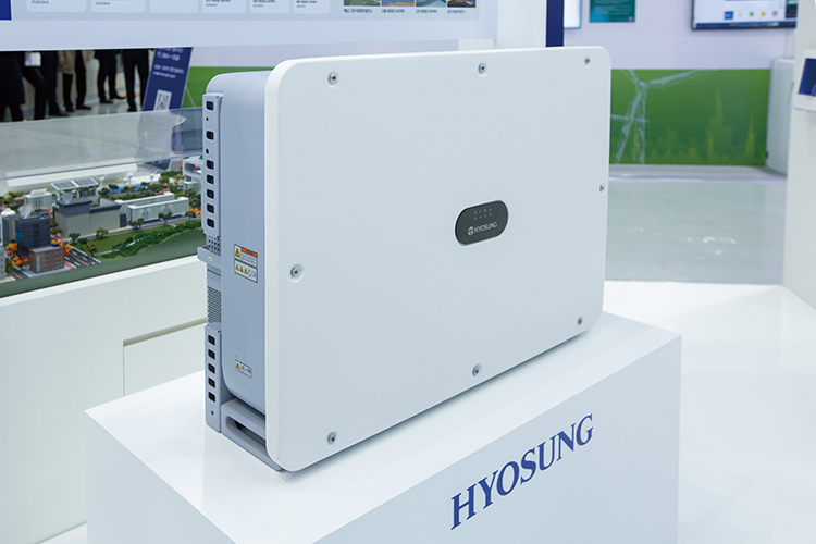 효성중공업의 주요 전시 기술을 살펴보면, 먼저 98%라는 높은 시스템 변환 효율을 자랑하는 센트럴 인버터는 태양전지 출력 특성에 따라 최대 전력점 추종 제어(MPPT) 기능을 제공합니다. 다양한 사용 환경에 대응 가능한 제품 라인업을 보유하고 있다는 점이 강점이다.