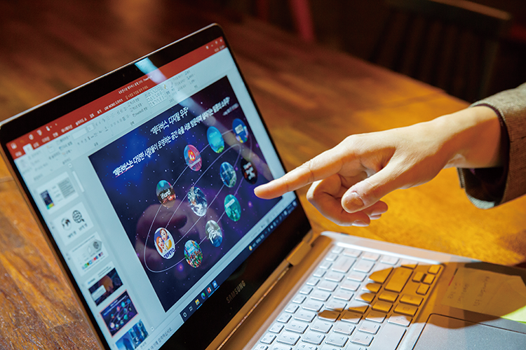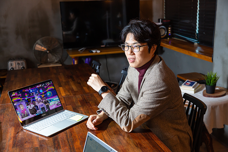 “코로나로 비대면 상황은 메타버스 시대를 10년 정도 앞당겼다는 말이 있습니다. 재택근무 요구 가 높아지고 기술 진화가 빨라지며 메타버스가 근무 환경을 가상 공간 속에 구현하면서 의사소통 방법과 일하는 방식을 바꿔놓고 있지요. 넷플릭스, 디즈니, 우버 등 수많은 글로벌 기업도 이미 메타버스 업무 플랫폼을 적극적으로 활용하고 있습니다. 이제 메타버스를 얼마나 잘 활용하느냐에 따라 미래 기업의 경쟁력이 달려 있다고 해도 과언이 아닙니다.”
