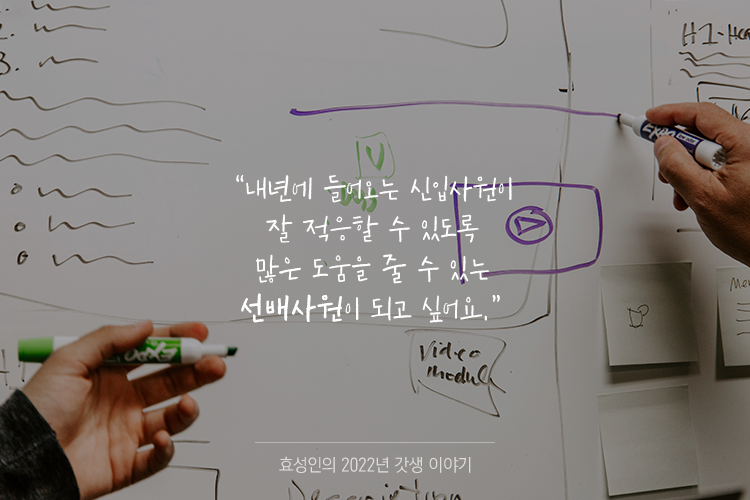 “스트레스 받고 힘들어도 남을 더 배려하고 이해하려 노력할 겁니다. 그리고 내년에 들어오는 신입사원이 잘 적응할 수 있도록 많은 도움을 줄 수 있는 선배사원이 되고 싶어요.”