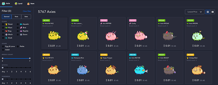엑시 인피니티 내에서 사용되는 이 AXS 토큰은 실제 코인 시장에서도 거래되고 있어 게임으로 얻은 토큰을 바로 현금화할 수 있어요. 지금까지 엑시 인피니티에서 가장 비싸게 거래된 아이템은 300이더리움으로, 당시 현금 가치로 약 6억 5,500만 원에 달했습니다.