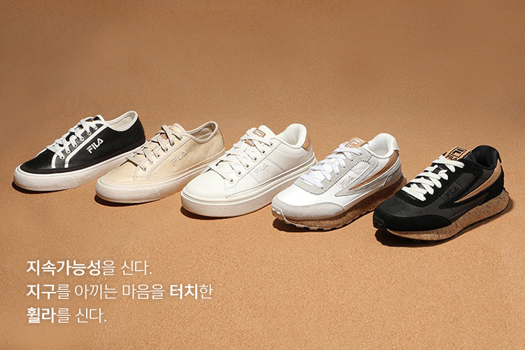100년 전통의 이탈리아 브랜드에서 한국 브랜드가 된 휠라도 친환경을 신기 시작했어요. 지난 9월, 휠라(FILA)는 친환경 프로젝트 슈즈 ‘어스터치(EARTH TOUCH) 시리즈’를 론칭했습니다. 브랜드를 대표하는 인기 슈즈 3종에 각종 친환경 소재를 접목해 선보이는 것이죠.