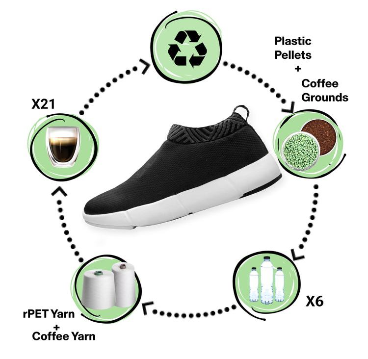 2018년 여름, 크라우드펀딩 플랫폼 킥스타터(Kickstarter)와 인디고고(Indiegogo)에 썩 괜찮은 제품이 올라왔어요. 커피 찌꺼기로 만든 신발인데요, 그냥 커피 찌꺼기 신발이 아니라 ‘세계 최초’라는 타이틀이 하나 더 붙어요. 베트남 청년 2명은 핀란드에서 렌즈(Rens)라는 스타트업을 차렸고, 많은 회사가 옷을 만들기 위해 커피 찌꺼기를 사용하지만 아무도 커피 찌꺼기로 신발은 만든 적은 없다는 사실을 알게 되면서 직접 신발을 만들게 되었다고 합니다.