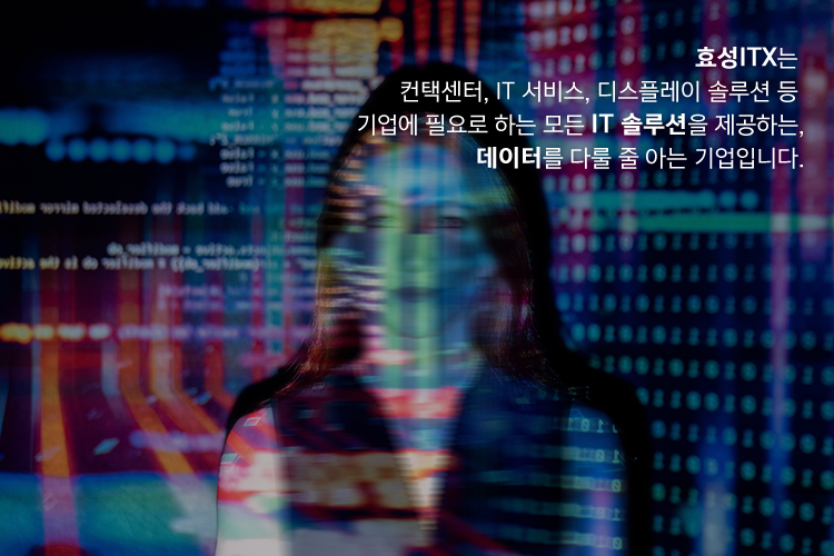 기업에 필요로 하는 모든 IT 솔루션을 제공하는, 데이터를 다룰 줄 아는 기업이 바로 효성ITX입니다. 기업과 고객의 커뮤니케이션 채널을 제공・관리하는 컨택센터 사업 및 기업에 다양한 네트워크 인프라와 기술을 제공하는 IT 서비스 사업, 빔프로젝터 등 영상기기 판매부터 설치까지 제공하는 디스플레이 솔루션 사업을 영위하고 있습니다.