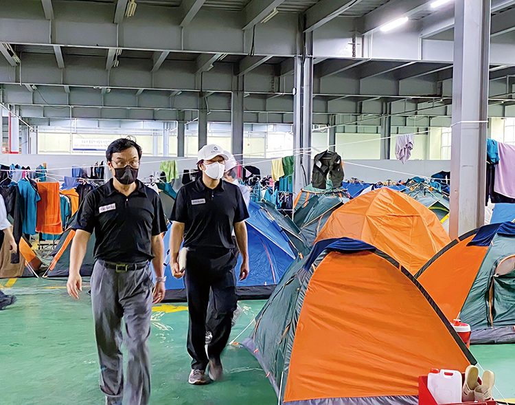 공장 내 숙식 근무를 하지 않으면 베트남 정부에서 공장 운영을 중단시킬 수도 있다는 동향을 사전에 파악해 6,000여 명의 임직원이 거주할 수 있는 부지 확보, 임시 숙소 구축, 텐트 구매 등을 발 빠르게 준비한 것이 신의 한 수였습니다. 실제로 베트남 정부는 ‘록다운’ 조치를 취했고 정부의 명령만을 기다리던 회사들은 텐트 부족과 물류 대란으로 어려움을 겪기도 했습니다. 숙식 근무를 시작하면서 집단 감염이 발생한 공장들도 있었지만 우리는 외부 인력과의 접촉 최소화, 내부 인력의 경우 정부 지침보다도 강력한 방역 수칙을 운영해 3개월간 코로나 확진자가 한 명도 발생하지 않았다는 것에 자부심을 느꼈습니다.