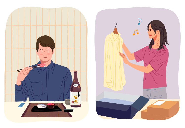 가끔 정말 말도 안 되는(이유를 알 수 없는) 소비패턴이 나타나기도 하는데요, 예를 들면 영수증이 예뻐서, 패키지까지 취향을 잘 담아내서 등의 이유가 붙어 있어요. 이것은 단지 아기자기하고 예쁜 제품에 열광하는 게 아니라 심리적 만족감을 주기 때문입니다. 평소엔 편의점 삼각김밥으로 때우기도 하지만, 특별한 날엔 한 끼에 10만 원에 달하는 오마카세를 즐기는 것도 이런 이유에서죠.