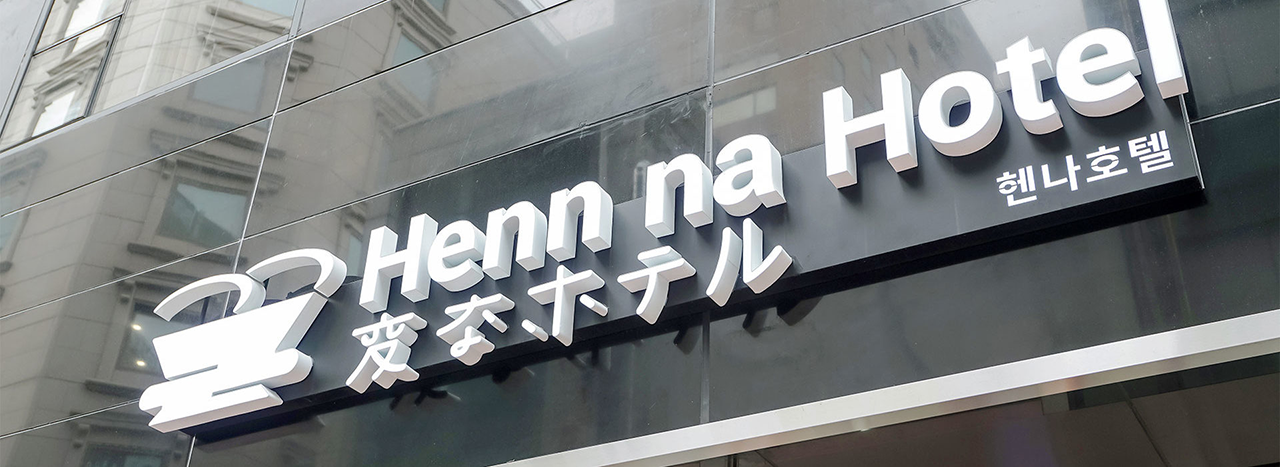 ‘헨나’는 ‘이상한’이라는 뜻의 일본어로 이곳에서는 종업원을 단 한 사람도 볼 수 없다. 종업원 전체가 로봇이기 때문. 지점에 따라 사람과 똑같은 모습이거나 공룡 로봇인 곳도 있어 색다르다. 프런트에 다가서면 일본어, 영어, 중국어, 한국어 구사가 가능한 로봇 종업원이 응대한다. 한국인 고객이 머뭇거리면서 “한국인인데요”라고 말하면 로봇 종업원은 즉각 “아, 그러세요. 어서오세요”라고 인사를 건넨다. 이어서 “예약을 하셨나요?”라는 질문이 나오고 “네”라고 대답하면 예약자 이름을 묻는다. 로봇은 PC 화면으로 예약자를 바로 찾아내고 호텔방 열쇠를 준다. 손님이 열쇠를 받아 방으로 들어가면 그곳에도 30㎝ 크기의 종업원이 기다리고 있다. 요청 사항이 있을 경우 바로 해결해주는 역할을 한다. 지난해 8월, 서울 명동에 처음 들어선 헨나 호텔 명동점에서 벌어지고 있는 풍경이다.