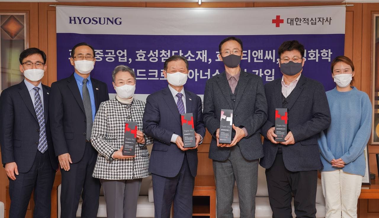 효성그룹의 주요 계열사인 효성티앤씨㈜, 효성첨단소재㈜, 효성화학㈜, 효성중공업㈜이 적십자사 고액기부클럽인 레드크로스 아너스기업 회원으로 나란히 이름을 올렸습니다.