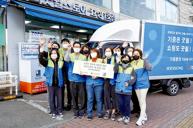 효성그룹이 3월 17일 서울 은평구에 있는 굿윌스토어에 기증품 운반을 위한 1톤 트럭을 후원했다. 기존에 사용하던 트럭도 2013년 효성그룹이 지원한 차량이다. 효성그룹이 장애인과 취약 계층의 일자리 창출을 위해 설립한 굿윌스토어 은평점에서는 중증 장애인 5명과 탈북민 2명이 일하고 있으며 기증품을 분류하고 판매하는 업무를 담당하고 있다.
