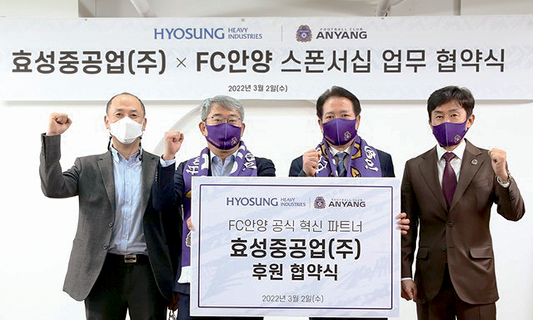 효성중공업이 FC안양의 메인 스폰서 공식 후원 재계약을 맺었다. 안양의 유니폼 전면에는 ‘해링턴 플레이스’ 로고가 들어가고 안양 경기장과 온•오프라인 채널에는 효성중공업 광고물이 설치된다.