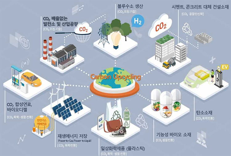 사실 전 세계가 CCUS 기술 개발에 매진하는 이유는 단순히 이산화탄소를 줄여 지구 온난화의 속도를 늦추는 데에만 목적이 있는 건 아니에요. 이산화탄소 포집, 화학 전환, 생물 전환, 광물 탄산화 등의 CCU 기술을 활용하면 골칫거리였던 이산화탄소를 산업현장에 필요한 신소재로 바꿀 수 있기 때문입니다.