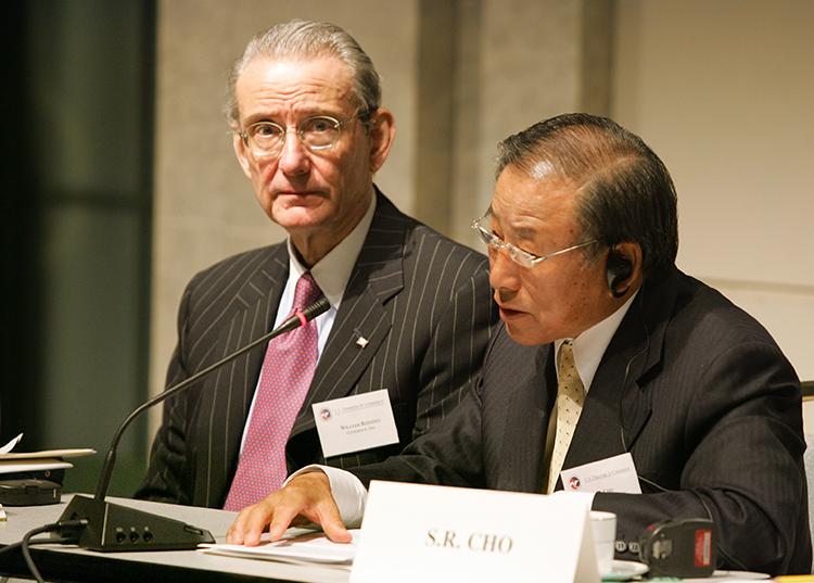 한미 FTA의 사전 단계인 한미투자협정(BIT)을 성사시키기 위한 노력도 계속됐습니다. 당시 이해찬 총리, 한덕수 경제부총리, 힐 주한미국대사를 만나 설득하는 등 양국 경제계가 화합할 수 있도록 앞장섰을 뿐 아니라 한미투자협정의 가장 큰 걸림돌이었던 스크린쿼터 문제를 해결하기 위해 영화계를 직접 만나 의견을 조율하는 적극성을 보였죠. 특히 노무현 전 대통령에게도 한미투자협정과 한미 FTA의 필요성을 피력했고 양국 한미재계회의/미한재계회의 위원장 명의로 대통령에게 한미 FTA를 촉구하는 공문도 수차례 보냈습니다. 그러던 중 한미투자협정이 스크린쿼터 문제로 인해 표류하자 2005년 제18차 한미재계회의에서 한미투자협정을 FTA에 포함해 일괄 타결하자는 대안을 제시했고 결국 이를 바탕으로 2006년 2월에 양국 정부는 한미 FTA 협상을 시작했죠.