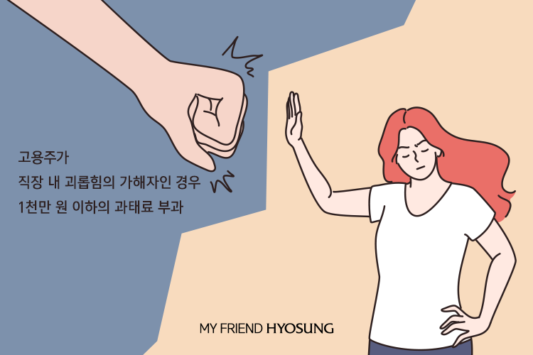 이번에 개정된 법에 따르면 사용자(고용주)가 직장 내 괴롭힘의 가해자인 경우 1천만 원 이하의 과태료가 부과됩니다. 또한, 사용자의 배우자, 4촌 이내의 혈족, 4촌 이내의 인척까지도 고용주에 준하는 제재 대상에 포함되었어요. 강화된 과태료 규정은 아래와 같습니다.