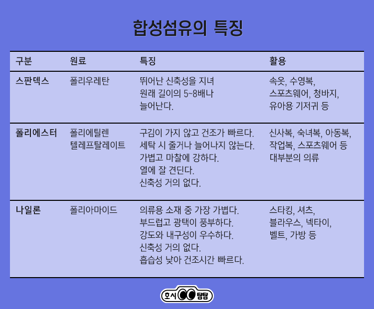 [호시탐탐] 스판덱스, 폴리에스터, 나일론은 어떻게 다르지?