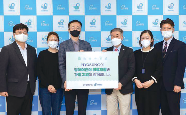 효성그룹이 4월 6일 장애 어린이, 청소년을 위해 푸르메 재단에 지원금을 전달했다. 효성그룹은 푸르메 재단을 통해 2013년부터 장애 어린이, 청소년들이 제약 없이 치료를 받고 배움과 다양한 문화생활을 누리며 재능을 키워갈 수 있도록 후원하고 있다. 앞으로도 장애 어린이 지원은 물론, 비장애 형제들의 심리 치료까지 지원할 예정이다.