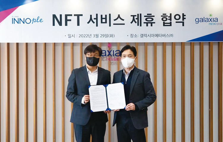갤럭시아메타버스가 3월 29일 이랜드이노플과 NFT 사업을 위한 업무 협약을 맺었다. 이랜드이노플은 어린이들에게 사랑받고 있는 ‘코코몽’ 캐릭터를 보유하고 있다. 앞으로 두 회사는 코코몽의 지식재산권을 활용한 NFT 콘텐츠를 개발하고 이를 메타갤럭시아에서 발행해 판매할 예정이며 ‘디지털 코코몽 시리즈’도 선보일 계획이다.