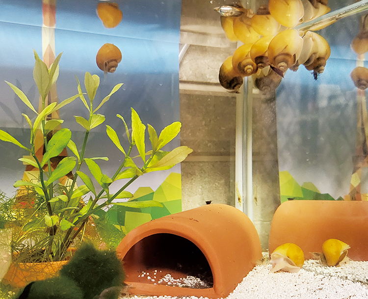 작년에 딸이 방과 후 수업에서 ‘애플 스네일(Apple Snail)’ 한 마리를 얻어왔습니다. 신경을 거의 못 썼는데 밥공기만 한 플라스틱 통 안에서도 잘 크더라고요. 그렇게 반년 가까이 함께 살다 보니 조금 안쓰럽더군요. 큰 집으로 옮겨줄까 싶어서 제법 큰 어항을 들였습니다. 혼자라 적적할 듯싶어 애플 스네일 몇 마리, 새우도 몇 마리 새 식구로 들였지요. 덕분에 저녁 시간이면 아빠 무릎에 앉은 딸과 함께 ‘물멍’하는 시간이 생겼답니다. 반려견, 반려묘가 아닌 반려와(蝸)랄까요.