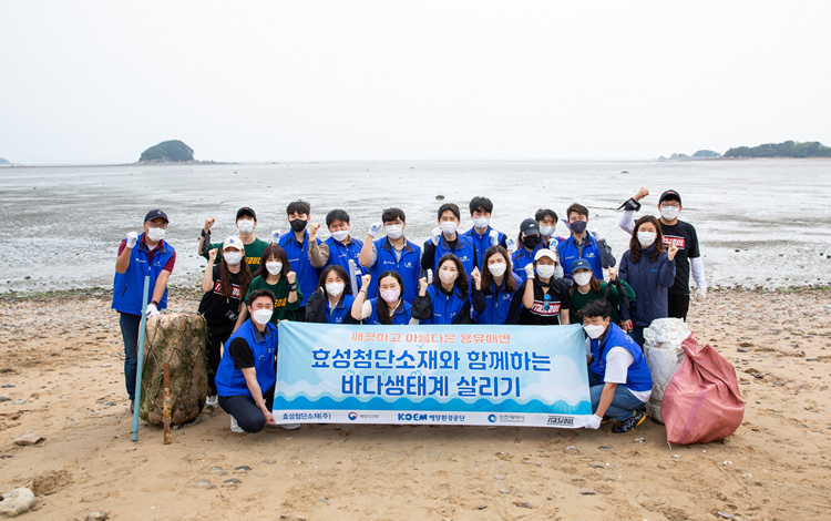 효성첨단소재도 반려해변 프로그램에 참여하고 있습니다. 지난 5월 22일 ‘세계 생물다양성의 날’을 기념해 효성첨단소재 임직원이 인천 영종도 용유해변을 찾아 반려해변 정화활동에 나섰죠. 올해 국내에서 진행되는 반려해변 활동 중 첫 번째 사례로 남았어요.