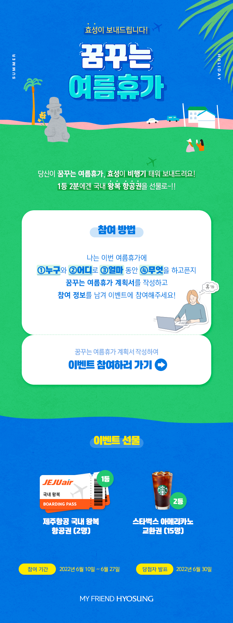 [이벤트] 효성이 비행기 태워 보내드립니다! 당신이 <꿈꾸는 여름휴가> EVENT