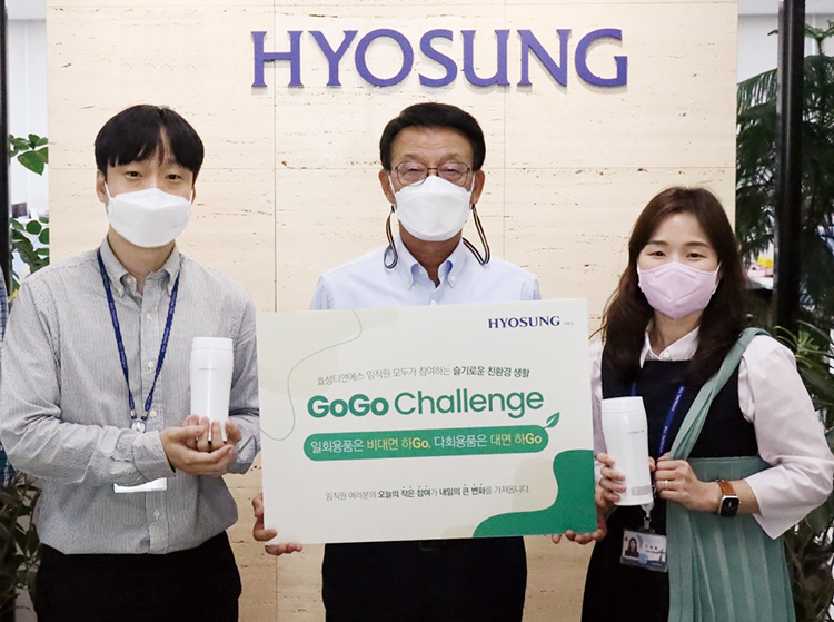 효성티앤에스 손현식 대표이사가 5월 23일 환경부의 환경보호 캠페인 ‘고고 챌린지’에 동참했다. 고고 챌린지는 환경부가 일상생활 속 플라스틱 사용을 줄이기 위해 지난해 1월부터 시작한 친환경 캠페인으로 참여자는 환경보호를 위해 ‘하지 말아야 할 일’과 ‘할 수 있는 일’을 약속한다.