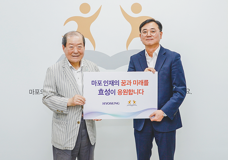 효성그룹이 5월 17일 마포인재육성장학재단에 마포구 청소년들을 위한 장학금 2,000만 원을 전달했다. 효성그룹은 2015년부터 총 1억 6,000만 원을 후원했으며, 후원금은 마포구 내 성적 우수자와 재능 장학생, 취약 계층, 예체능 특기 장학생들에게 지급된다.