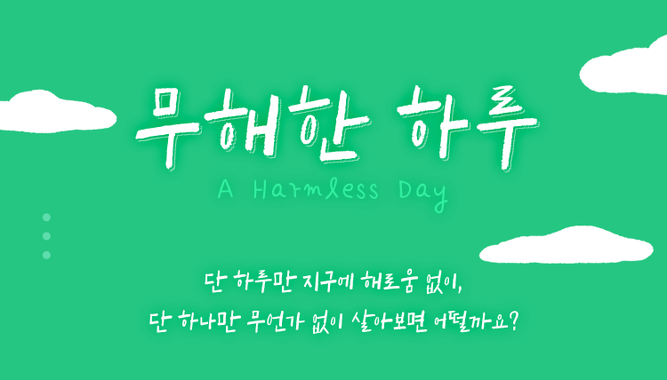 무해한 하루를 보낼 수는 없는 걸까요? 단 하루만 지구에 해로움 없이, 단 하나만 무언가 없이 살아보면 어떨까요?