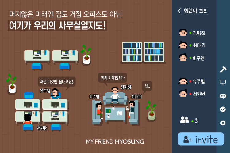 하지만 거점 오피스가 본사로의 출근보다는 편하지만, 다른 직원과의 의사소통이 곤란하고 성과관리가 어렵다는 점 등 업무상의 한계는 여전히 남아 있습니다. 중요한 건 우리는 더 이상 지정된 곳에서만 일하지 못하는 몸이 되었다는 것, 기업도 재택근무로 인해 회사 외의 공간에서의 높은 업무 성과와 효율성을 인정하고 있다는 것, 언제 어디서나 일할 수 있는 사회적 분위기와 환경이 조성되었다는 것 아니겠어요? 지금 당장은 문제 해결이 쉽진 않겠지만 빠르게 발전하고 있는 협업 툴과 메타버스로 구현한 가상 오피스로 인해 금세 해결이 되지 않을까 기대해봅니다.