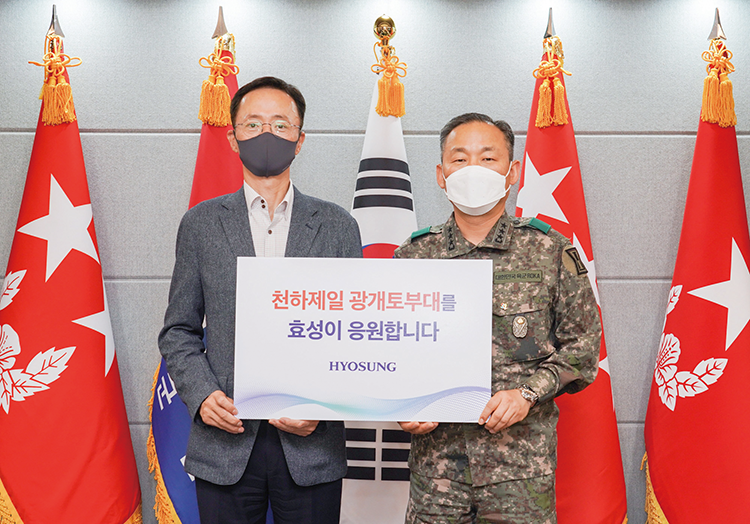 효성그룹은 6월 8일 육군 1군단 광개토부대를 방문해 국군 장병 복지에 쓰일 위문금을 전달했다. 효성그룹은 2010년 광개토부대와 1사 1병영 자매결연한 이후 매년 광개토부대를 방문해 위문금을 전하고 장병들을 위한 독서 카페, 체력 단련 용품, 세탁 카페 등을 후원해왔다.