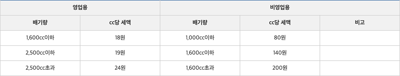 자동차세는 자동차의 소유에 대하여 과세하는 재산세적 성격을 갖는 시세로서, 후불제로 부과되는 지방세입니다. 비영업용 승용자동차에는 지방교육세 30%가 부과됩니다. 배기량에 CC당 세액을 곱하여 산출한 세액을 연세액으로 산출하는데, 비영업용 승용자동차는 차령별 자동차세 차등과세에 의거 등록 후 만 2년이 초과되는 해부터 1년에 5%씩 최고 50%까지 경감됩니다.