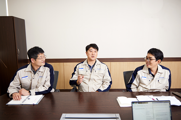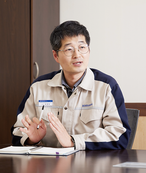 윤종원 과장 무슨 일이 언제 어떻게 벌어질지 모른다는 건 사람을 정말 불안하게 한다. 이 불안을 잠재우는 방법은 하나, 사소한 것이라도 의심스럽다면 검토에 검토를 거듭하는 것. 초고압 변압기는 맞춤 생산에 가깝다. 고객사가 원하는 사양에 따라 설계팀에서 전기 설계를 하고 디자인 리뷰를 거쳐 품질을 확보한 다음 권선•본체•탱크 설계 등으로 진행한다. 그런데 이번 프로젝트는 경험치가 적어 제작•설계•개발•품질팀까지 전 부서가 참여하는 ‘통합 디자인 리뷰 시스템’을 구축해 의심스러운 상황이 발생하면 모두가 다각도로 해결책을 찾았다. 외부 컨설팅도 받고, 매뉴얼에 있는 내용도 재확인하는 등 어떠한 돌발 상황도 미연에 방지할 수 있도록 힘쓴 기간이었다.