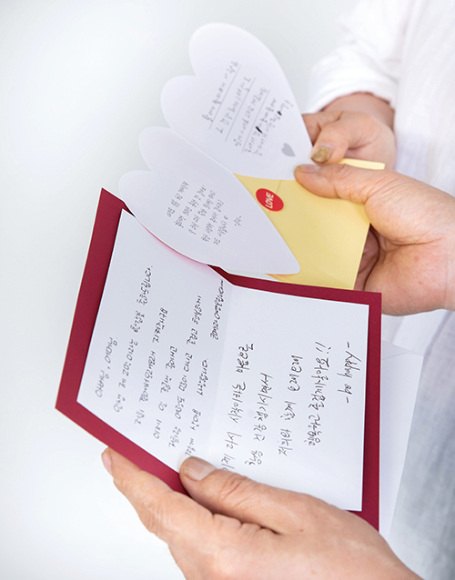 아버지와 어머니는 지난밤 네 가족이 머리를 맞대고 쓴 편지와 화사한 꽃다발을 선물로 받았습니다. 편지글 한 글자 한 글자를 두 눈에, 마음에 담아봅니다.