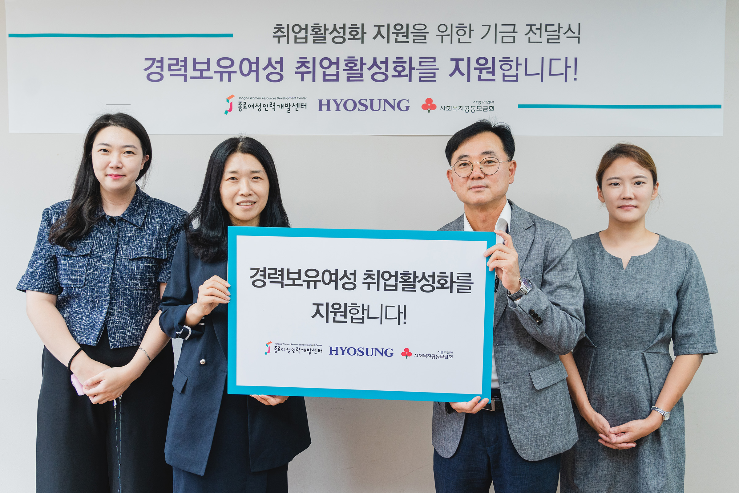 효성은 1일 서울시 종로구에 위치한 종로여성인력개발센터를 찾아 경력보유여성 취업 활성화 사업에 7천만 원을 전달했습니다.