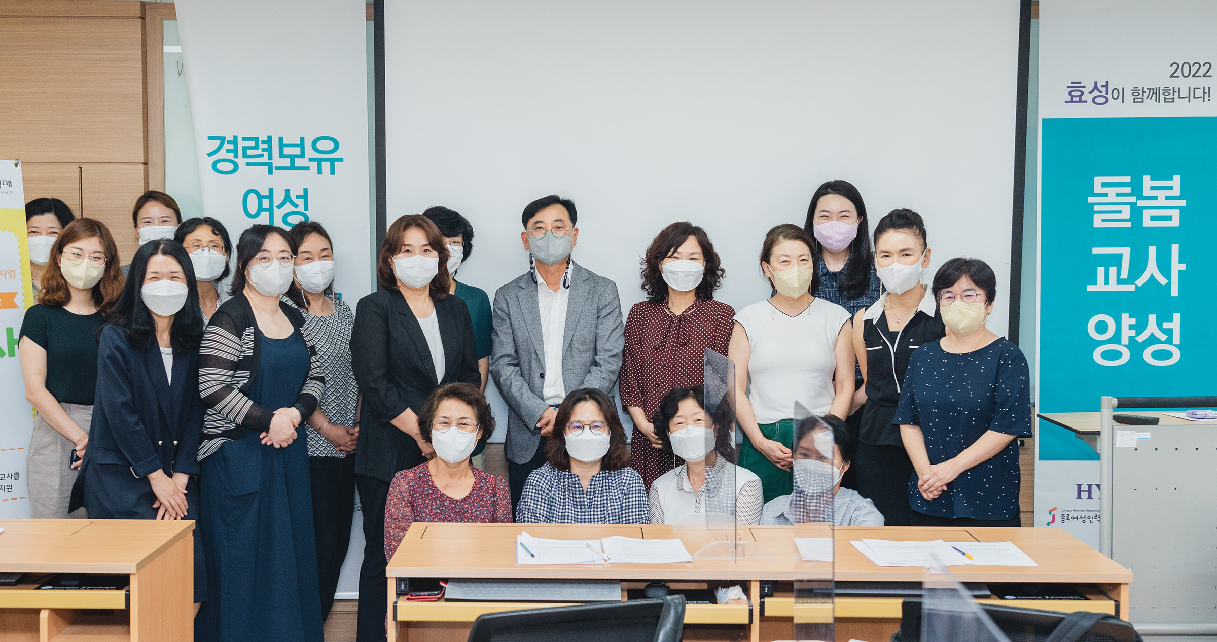 올해는 45세 이상 중장년 경력보유여성 약 40여 명을 대상으로 돌봄 교사 양성 프로그램과 요양보호사 양성 프로그램을 운영합니다. 프로그램이 끝난 뒤에도 정기적인 취업 상담과 구직 정보, 일자리 소개 등 취업에 성공할 수 있도록 지원하죠.