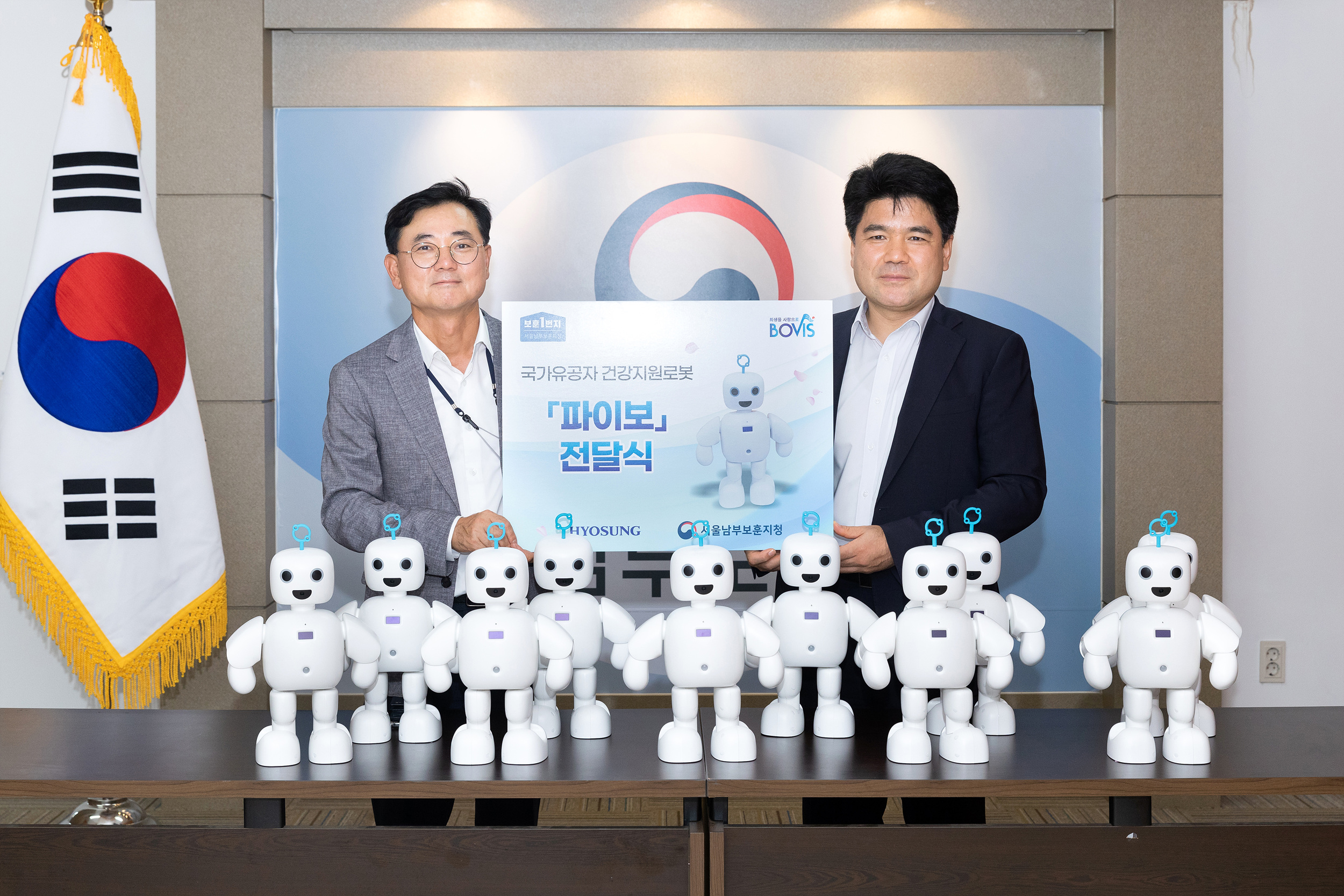 효성은 18일 서울남부보훈지청을 찾아 고령 국가유공자 10명을 위한 반려로봇 ‘파이보’를 전달했습니다.