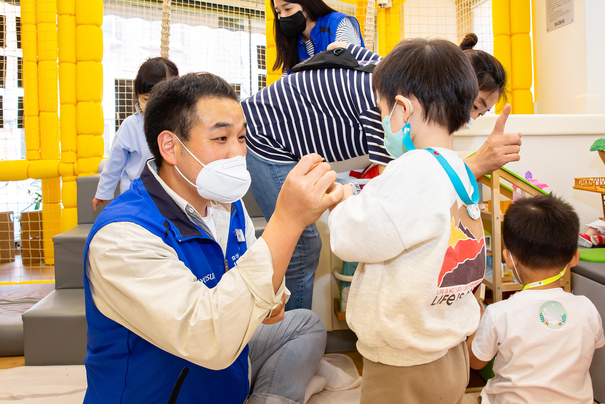이번 행사는 코로나19 확산 이후 2년 만에 다시 열리는 효성나눔봉사단의 봉사 활동입니다. 효성나눔봉사단원은 장애 영유아를 포함한 원아 32명을 도와 볼풀, 창의자석, 클라이밍 등 다양한 놀이 활동을 진행했습니다.