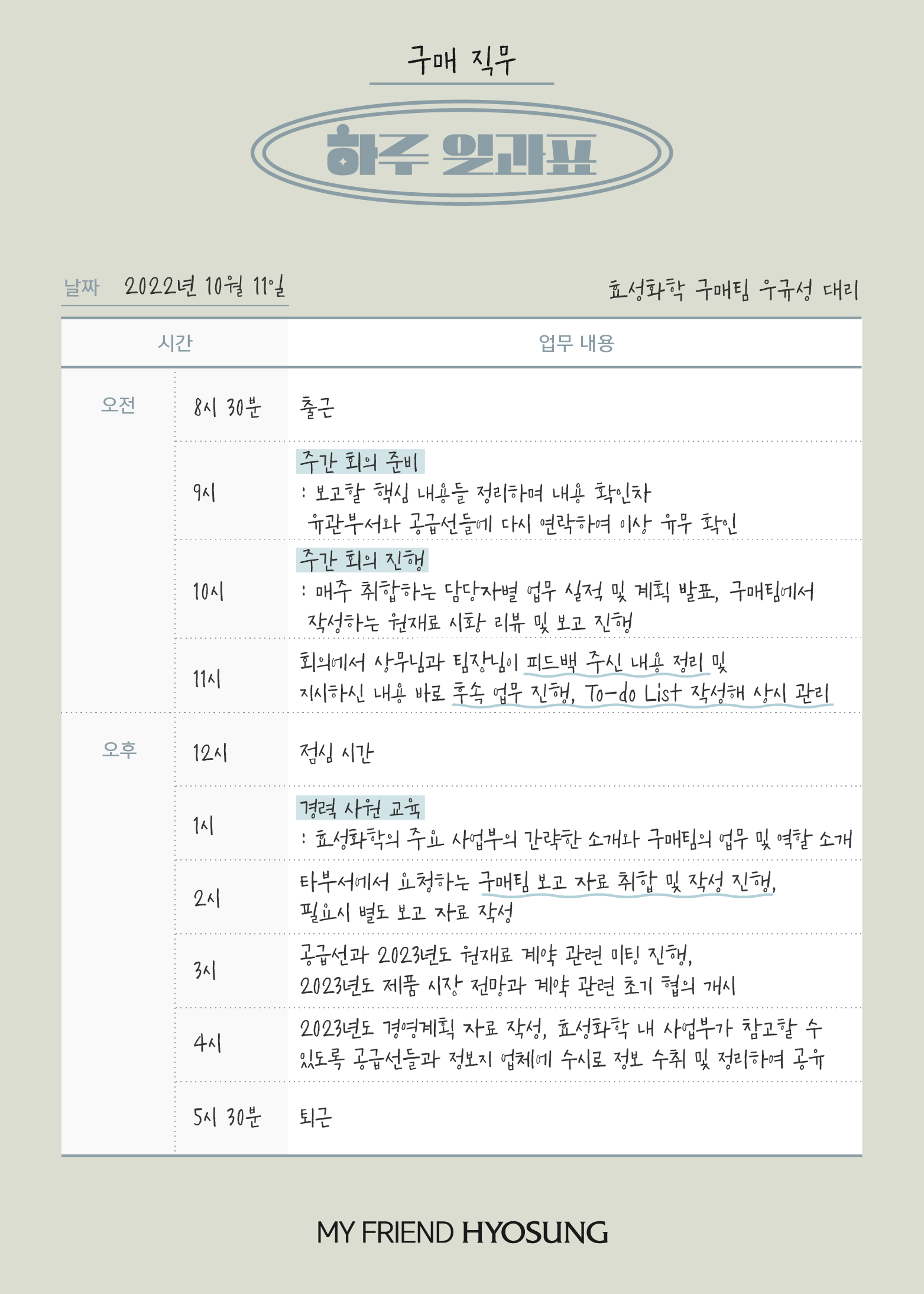 [하루 일과표로 보는 효성 직무별 현실 업무] 구매 직무 - 효성화학 구매팀 우규성 대리