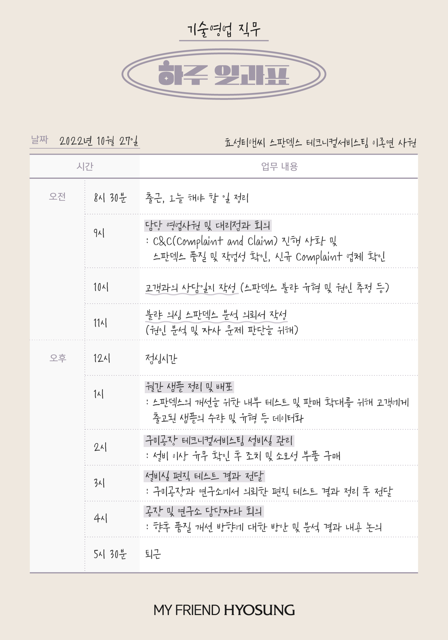 하루 일과표로 보는 효성 직무별 현실 업무: 기술영업 편