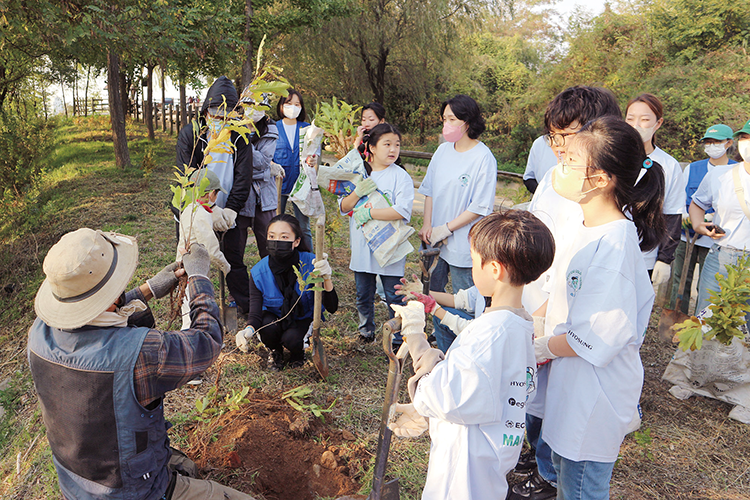 효성이 10월 22일 서울시 마포구 노을공원에서 시민과 효성 임직원 및 가족이 함께하는 ‘효성 나눔의 숲 나무 심기’ 행사를 실시했다. 이번 행사는 지난 8일 세빛섬에서 열린 효성의 친환경 축제 ‘세빛 ESG 컬러 페스티벌’의 후속 프로그램으로 시민들과 임직원이 직접 일상에서 친환경 활동을 실천할 수 있는 계기를 마련해보자는 차원에서 기획됐다.
