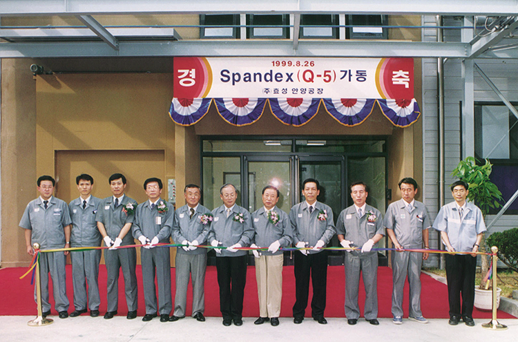 조석래 회장은 스판덱스의 전망이 밝다고 판단, 1990년 사업 진출을 결정하고 7년에 가까운 기간 동안 굴하지 않고 마침내 1997년 1월 스판덱스 상업화에 성공했다. 지속적인 투자와 격려를 아끼지 않은 조석래 회장과 연구원들의 불굴의 도전 정신이 만들어낸 성과였다.