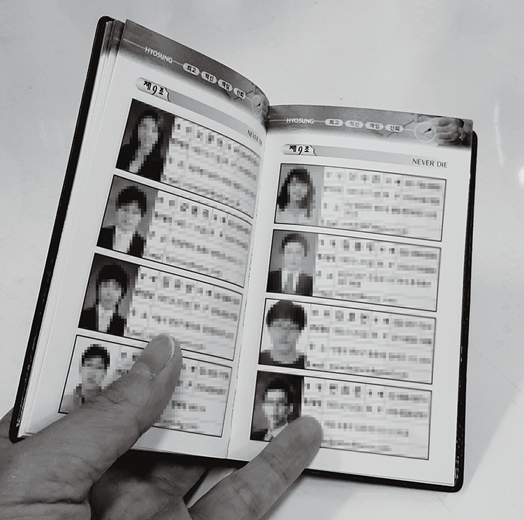 13년 전 신입사원 연수 때 받은 대졸 신입사원 인명록입니다. 지금은 사용하지 않지만 가끔 펼쳐 볼 때마다 당시의 열정과 패기가 떠오릅니다. 힘든 회사 생활에서 각성제 역할을 하는 나의 역사가 담긴 소장품이죠. 효성 56주년을 축하하며 회사와 내가 같이 발전해나가길 바랍니다.