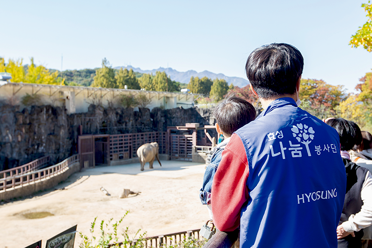 오늘 효성나눔봉사단이 아이들과 함께 떠난 곳은 서울대공원! 지난 9월, 키즈 카페 활동 이후 두 번째로 마련된 자리였습니다. 아이들은 서울대공원 동물원에 방문해 동물 친구들과 소통하고 자연을 탐색하는 시간을 가졌습니다. 저와 짝꿍이 된 성민이(가명)와 같은 반 친구들은 선생님께서 챙겨 주신 동물원 지도를 보며 동물 친구들을 만나러 떠났습니다.