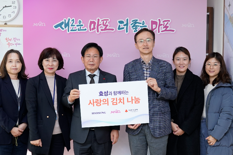 한편, 효성은 매년 마포구 주민을 대상으로 사랑의 생필품 나눔, 사랑의 쌀 나눔 등 사회공헌 활동을 이어왔습니다. 지난달에는 마포구 따뜻한 겨울나기 성금 모금에 참여해 지역사회 주민의 복지 향상에 기여했습니다.