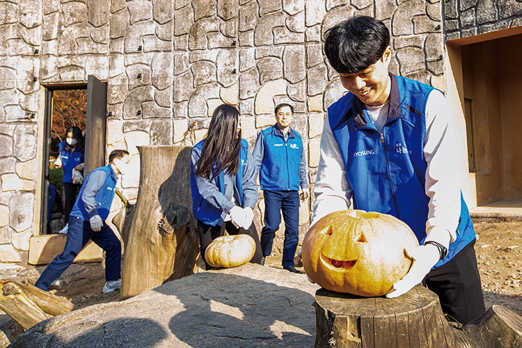 옥산공장에서 자동차로 약 30분 거리에 위치한 청주동물원. 2014년 환경부가 지정한 ‘서식지 외 보전 기관’으로 반달가슴곰, 스라소니, 삵, 두루미 등 멸종 위기 야생동물 16종이 살고 있다. 동물원 휴관일에 맞춰 현장을 찾은 효성인들은 청주동물원 수의사로부터 설명을 듣고 동물원을 한 바퀴 돌아본 뒤 본격적인 활동에 나섰다.