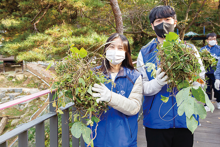 첫 번째 미션은 초식동물을 위해 칡줄기를 엮어 공 만들기. 효성인들은 동물원 주변에 무성하게 자란 칡줄기를 포대 가득 채취했다. 이후 칡줄기를 공처럼 엮어 히말라야 타르가 모여 있는 우리에 던져줬다. 그러자 히말라야 타르들이 하나둘 모여들어 냄새를 맡고 이리저리 굴리고 놀더니 칡줄기를 열심히 뜯어먹었다. 이렇게 놀이하듯 먹이를 섭취하는 과정을 통해 초식동물은 스트레스를 해소하고, 육체적·심리적 건강을 증진시킨다고 한다.